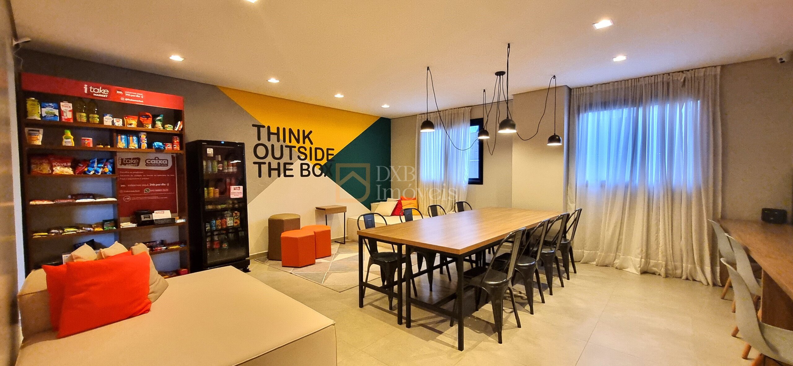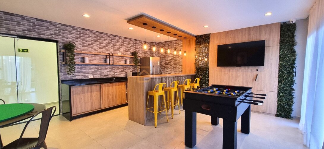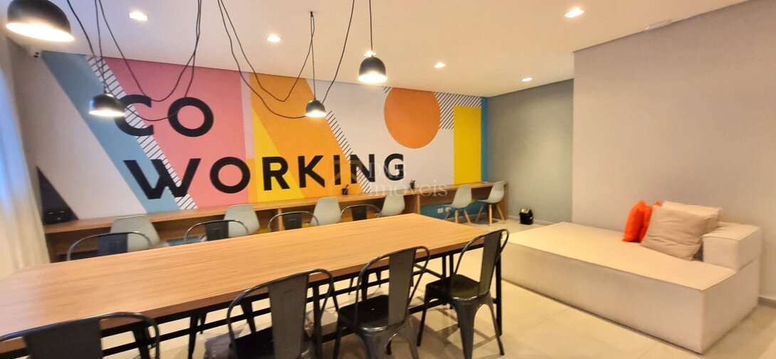 - Coworking, Lavanderia coletiva, Lounge Bar, salão de festas, salão de jogos, academia, piscina, coworking, lounge externo, lavanderia OMO, solário, sala de jogos, hall.