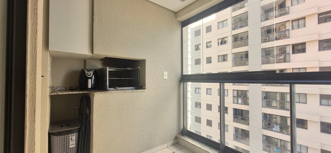 * Churrasqueira privativa a carvão, fechada com cortina de vidro "Reiki"